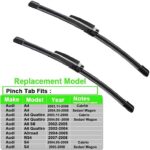 I found these on Amazon with all different types of reviews, especially made for Mercedes, but on the fine print it does say for Audi A8 and S8 D3, the length is the same 22″, the important thing is the blade sockets that matched the original wipers. The blade sockets looked the same so I took the chance to buy. What a surprise, they fit on my wipers perfectly and they came just in time, raining all weekends. There’s no streaks, no squeaky sounds like some of the reviews, the video would speak for themselves. They fit very nicely without any modifications, snap on and go. Make sure to align and push the lock in completely, they’re both secured in place and perform as they should. The price is amazingly low, although I don’t know how long they would last, but time will tell. Just got them today.